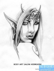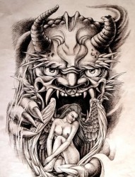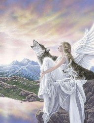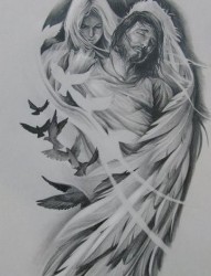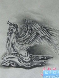 超美的一张欧美传统相结合的狼与天使纹身图片