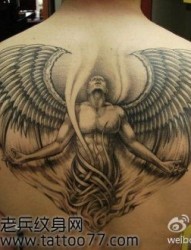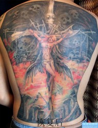 一张超酷的满背天使翅膀十字架骷髅纹身图片图案