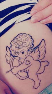 女生个性丘比特纹身图案