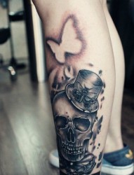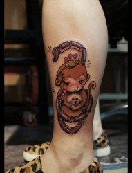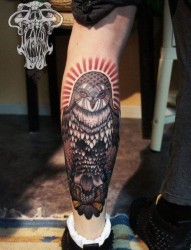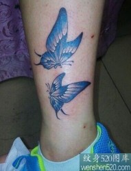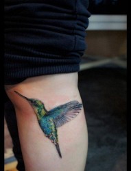 纹身520图库提供一款腿部彩色蜂鸟纹身图案