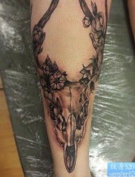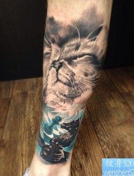 最好的纹身馆推荐一款腿部猫头鹰纹身图案