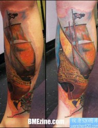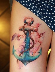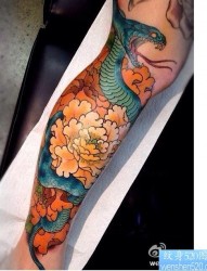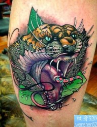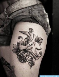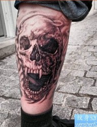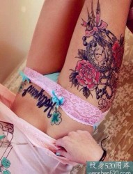 一款腿部骷髅玫瑰蜘蛛纹身图案
