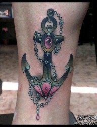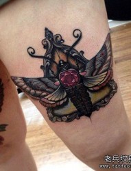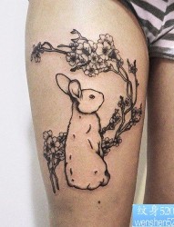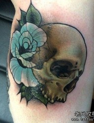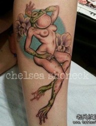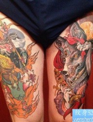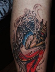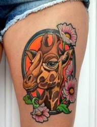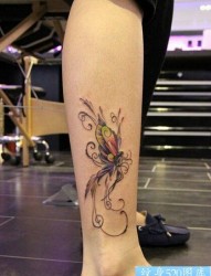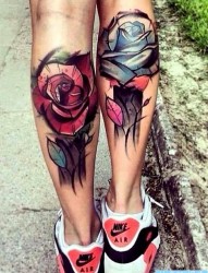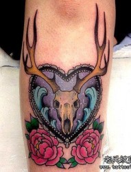 腿部彩色爱心羚羊玫瑰花纹身图案