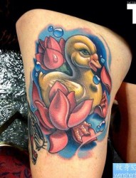 腿部一款个性鸭子纹身图案