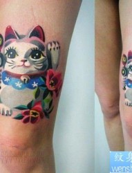 腿部招财猫纹身图案