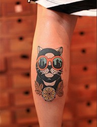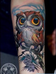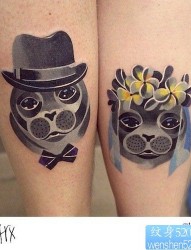 文身520图库推荐一幅腿部猫头鹰文身作品