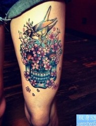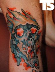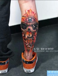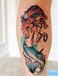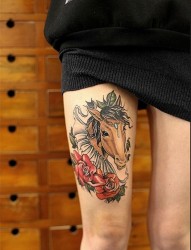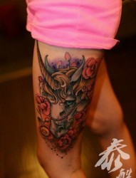 文身520图库推荐一幅腿部彩色独角兽文身作品