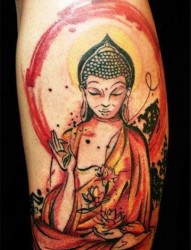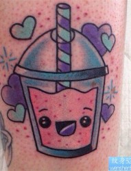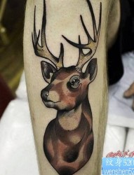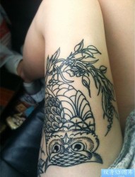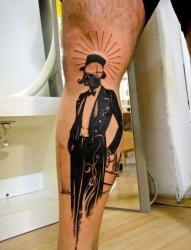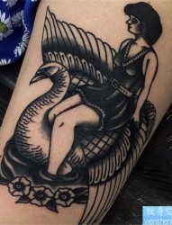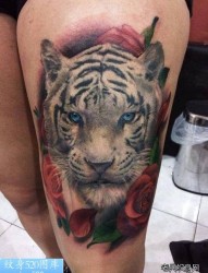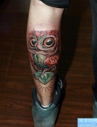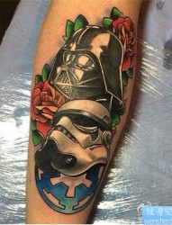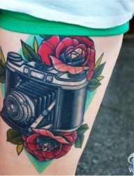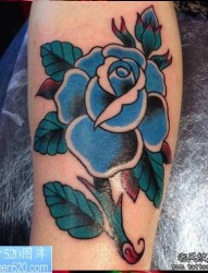 一幅女人腿部彩色船锚玫瑰花纹身作品