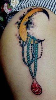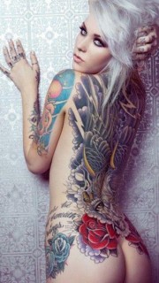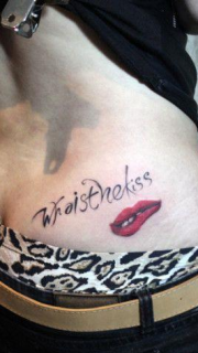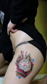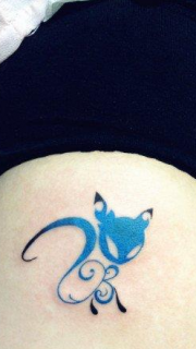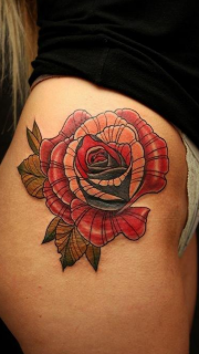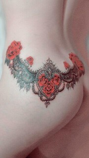 美女腰臀上蕾丝蝴蝶玫瑰纹身