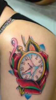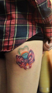 女生臀部流行时尚的蝴蝶结钻石纹身图案