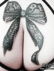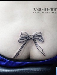 臀部纹身图片:臀部彩色骷髅蝴蝶结纹身图片纹身作品