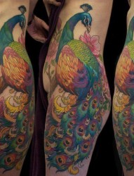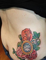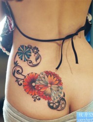 臀部纹身图片:美女臀部彩色莲花纹身图片作品