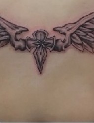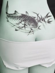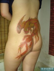 女士臀部漂亮的蜻蜓荷花纹身图案