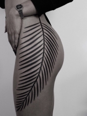 美女臀部大叶子图腾纹身图案