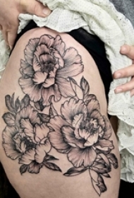 女生臀部纹身黑白灰风格点刺纹身花朵纹身图片
