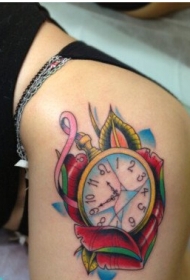 美女臀部时尚精美的钟表纹身图案