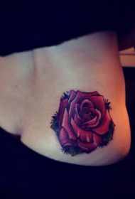 美女臀部鲜艳的玫瑰花纹身图案