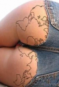 臀部性感的屁股地图纹身图案