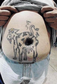 腹部有趣的牛屁股纹身图案