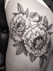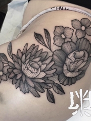 臀部右侧小清新植物纹身菊花上纹身三角形纹身图片