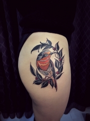 臀部可爱的彩色小鸡与小猪卡通纹身