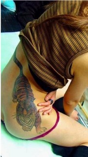 美女臀部的老虎纹身