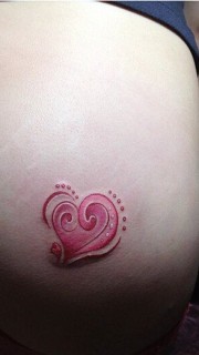 美女臀部精美彩色爱心纹身