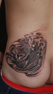 男生臀部鲤鱼跃龙门纹身