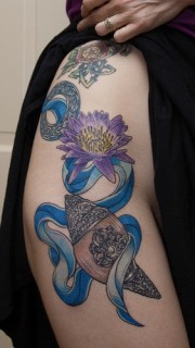 时尚另类美女臀部彩色莲花纹身