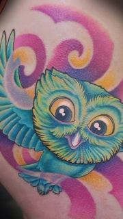 性感美女臀部超萌的猫头鹰纹身