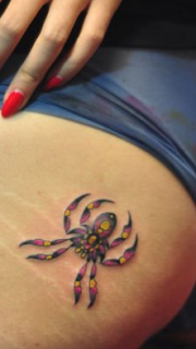 女生臀部彩色蜘蛛纹身图案