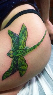 女性臀部上绿色的大蜻蜓