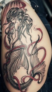 女性臀部个性美人鱼纹身图案