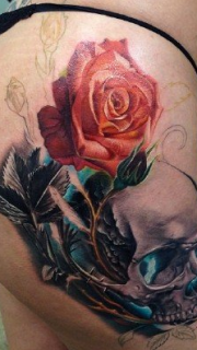 腰臀上逼真形象的玫瑰纹身图案
