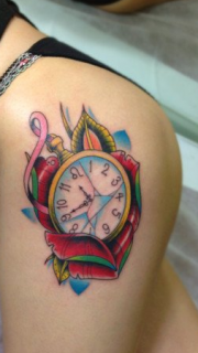 美女胯部时尚精美的怀表纹身图案