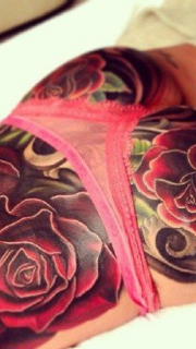 女性臀部腿部彩色纹身图案