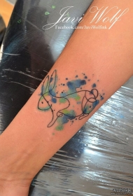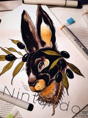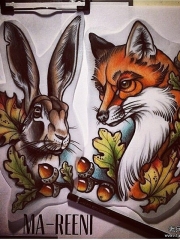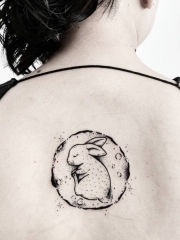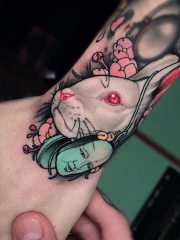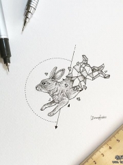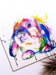 欧美school泼墨彩绘可爱的兔子纹身图案手稿