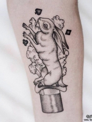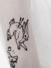 左右手臂内侧黑色长耳朵兔子纹身狼纹身图片