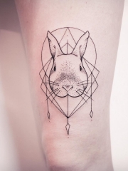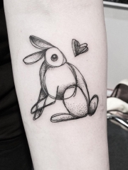 黑色的点刺纹身动物图案纹身简单手稿兔子图案