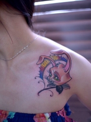 胳膊小清新花蕊彩色兔子和面具纹身图案