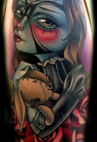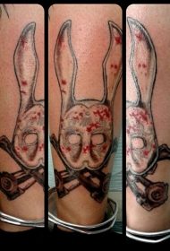 小腿彩色搞笑的兔子面具与拐杖纹身图案