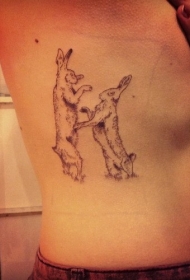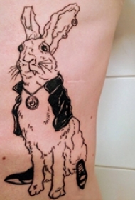 男生侧腰上黑色抽象线条小动物兔子纹身图片