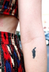 女生手臂上黑色小动物兔子轮廓纹身图片