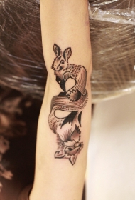 手臂黑色线条狐狸与兔子和字母纹身图案
