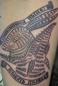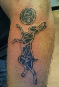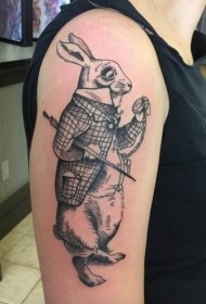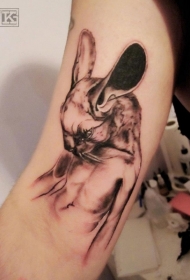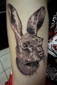 雕刻风格黑色线条可爱的兔子手臂纹身图案