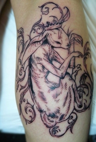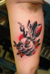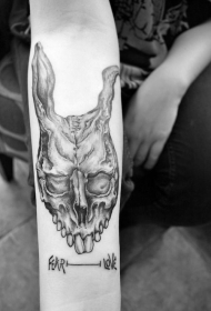 手臂令人毛骨悚然的黑色兔子颅骨纹身图案