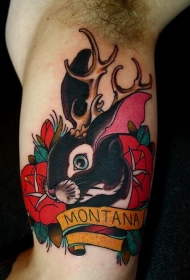 卡通风格彩色搞笑幻想兔子手臂纹身图案