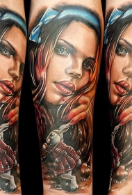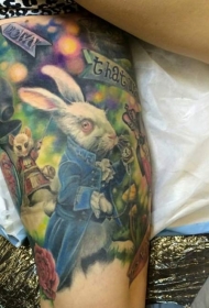 手臂梦幻的彩色爱丽丝兔子纹身图案