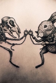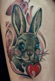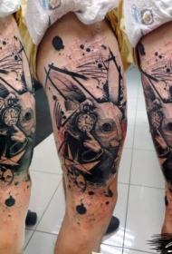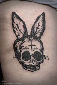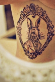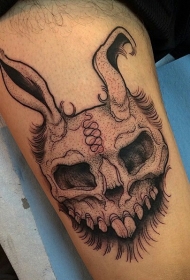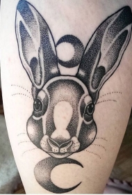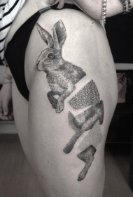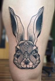 大腿雕刻风格黑白滑稽兔子纹身图案