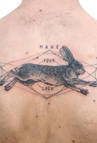 大臂雕刻风格黑色几何纸兔子纹身图案